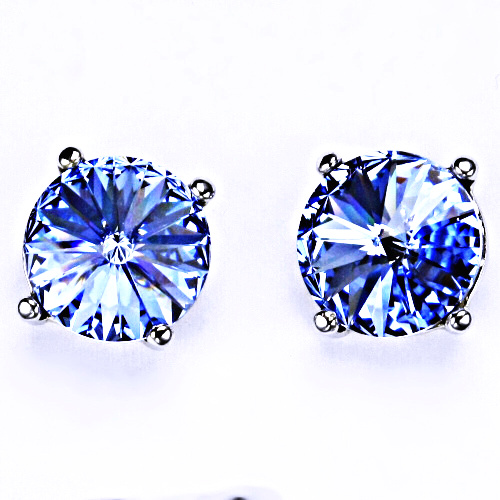 Stříbrné náušnice na šroubek s krystaly Swarovski Rivoli ( barva Light safir)NŠ 1188
