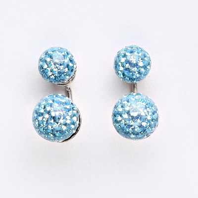 Stříbrné náušnice oboustranné, kuličky s krystaly Akvamarín 8+10 mm, NŠ 1356/1513
