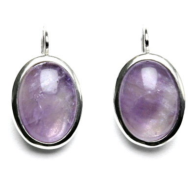 Stříbrné náušnice, přírodní ametyst světlý, 16 x 12 mm, NK 1455