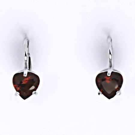 Sříbrné náušnice s přírodním granátem ve tvaru srdce se zapínáním na klasický patent. Velikost granátu je 6 mm.
