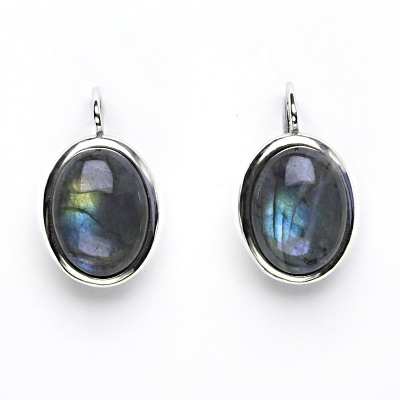 Stříbrné náušnice, přírodní labradorit, 16 x 12 mm, NK 1455