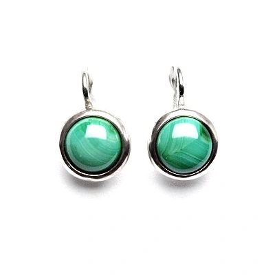 Stříbrné náušnice na klasické patentové zapínání zdobí přírodní kámen Malachit