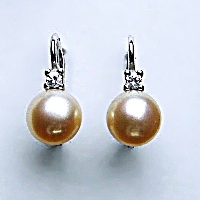 Stříbrné náušnice jsou zdobeny lososovou přírodní říční perlou o průměru 8 mm a čirým zirkonem. Stříbrné náušnice mají patentové zapínání. Materiál náušnic je stříbro 925/1000.