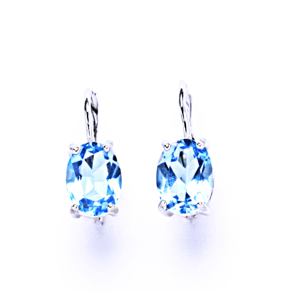 Stříbrné náušnice s pravým přírodním topazem velikosti 8x6 mm.Naše šperky mají povrchovou úpravu - čisté Rhodium,které nevyvolává žádné alergické reakce.Zapínání - klasický patent.K těmto náušnicím nabízíme na našem E-shopu i přívěsek nebo prsten bare