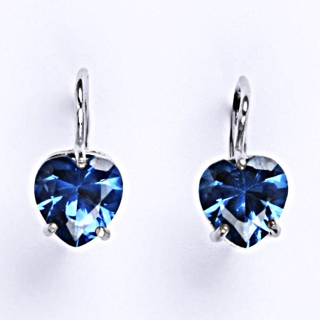Stříbrné náušnice s akvamarínem ve tvaru srdce. Velikost náušnice je 17 mm. Materiál je stříbro 925/1000. Náušnice mají povrchovou úpravu čisté rhodium.
