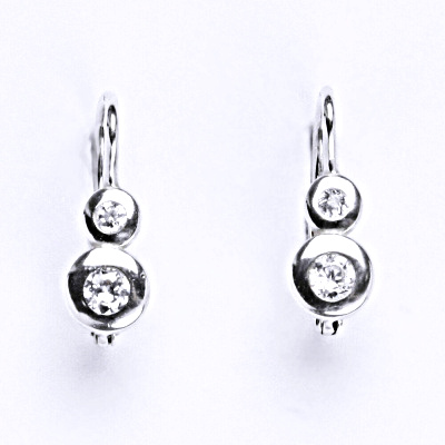 Stříbrné náušnice s čirým zirkonem. Materiál je stříbro 925/1000. Náušnice mají povrchovou úpravu čisté rhodium. Orientační váha náušnic je 1,23 g.