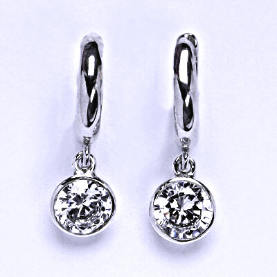 Stříbrné náušnice s čirým zirkonem na kruhové náušnici. Celková výška náušnice je 22 mm. Materiál je stříbro 925/1000.