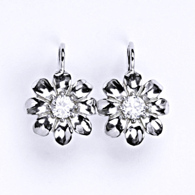 Stříbrné náušnice s čirým zirkonem, kytička NK 1389
