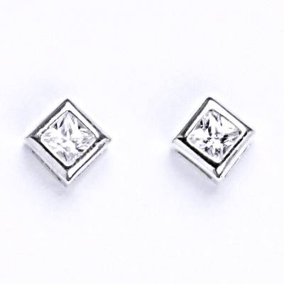 Stříbrné náušnice s čirým zirkonem se zapínáním na šroubek. Materiál je stříbro 925/1000. Náušnice mají povrchovou úpravu čisté rhodium.