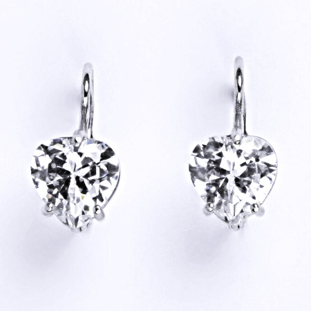 Stříbrné náušnice s čirým zirkonem, srdce 8x8mm, NK 1358