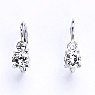 Stříbrné náušnice s čirými zirkony. Celková výška náušnice je 17 mm. Materiál je stříbro 925/1000. Náušnice mají povrchovou úpravu čisté rhodium.