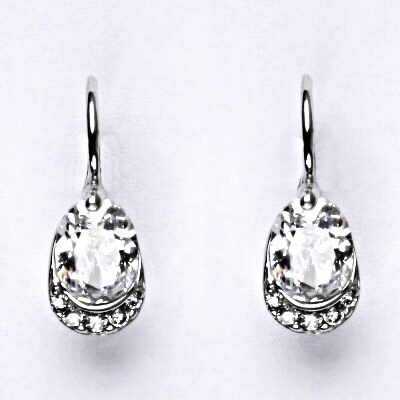 Stříbrné náušnice s čirými zirkony. Celková výška náušnice je 19 mm. Rozměr zirkonu je 8x6 mm. Materiál je stříbro 925/1000.