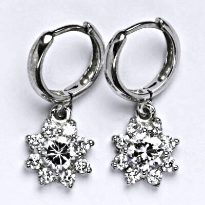 Stříbrné náušnice s čirými zirkony ve tvaru kytičky upevněné na kruhu. Celková výška náušnic je 24 mm.Orientační váha náušnic je 3,41 g. Materiál je stříbro 925/1000.