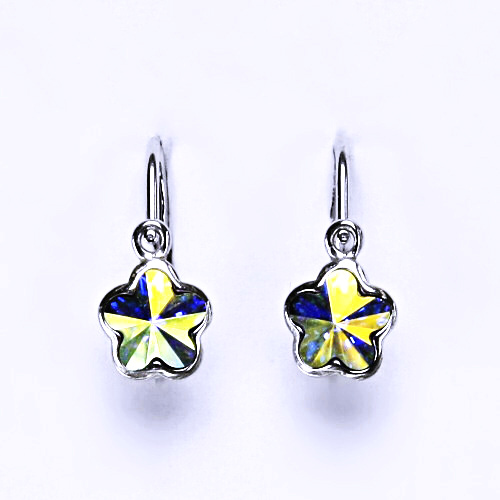 K výrobě dětských stříbrných náušnic byly použity krystaly Swarovski barvy AB crystal.Velikost krystalu- kytičky je 6 mm.Povrchová úprava - čisté Rhodium - nevyvolává žádné alergické reakce.Celková délka náušnice - 14 mm.Dětské zapínání.