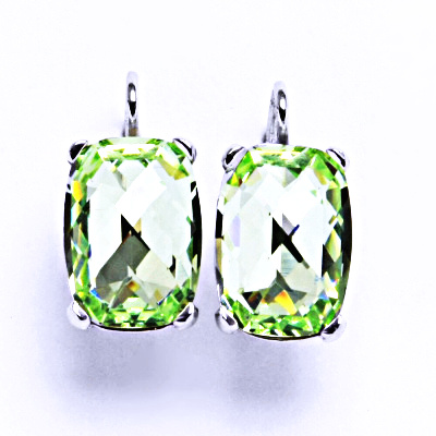 Stříbrné náušnice na klasické patentové zapínání s krystaly Swarovski.Barva Chryzolit,velikost krystalu 14x10 mm.Šperky mají povrchovou úpravu-čisté Rhodium,které nevyvolává žádné alergické reakce na nikl.
