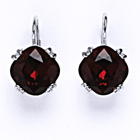Stříbrné náušnice s krystalem Swarovski o velikosti 10x10 m barvy siam mají uzavírání na patent.Jako povrchovou úpravu jsme použili čisté Rhodium. Celková výška náušnice je 17 mm.K náušnicím si lze doobjednat i přívěsek a prsten v téže barvě do soupr