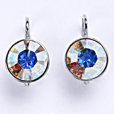 Náušnice s AB krystalem Swarovski na klasické zapínání patent. Celkový průměr náušnice je 11 mm. Meteriál je stříbro 925/1000. Náušnice mají povrchovou úpravu čisté rhodium.