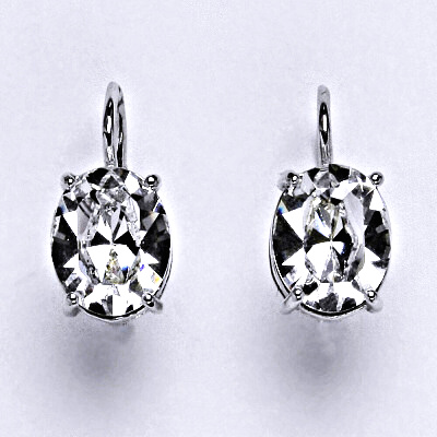 Stříbrné náušnice se Swarovski krystalem. Náušnice mají klasické zapínání na patent. Velikost Swarovski krystalu je 10 x 8 mm. Celková výška náušnice je 17 mm. Materiál je stříbro 925/1000.
