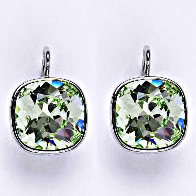 Stříbrné náušnice se Swarovski krystalem chryzolit se zapínáním na patent. Velikost krystalu je 12 x 12 mm. Výška náušnice je 18 mm. Materiál je stříbro 925/1000. Náušnice mají povrchovou úpravu čisté rhodium.