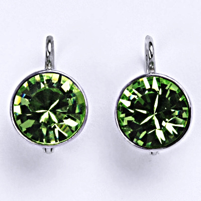 Náušnice s krystalem Swarovski barvy peridot na klasické zapínání patent. Celkový průměr náušnice je 11 mm. Meteriál je stříbro 925/1000. Náušnice mají povrchovou úpravu čisté rhodium.