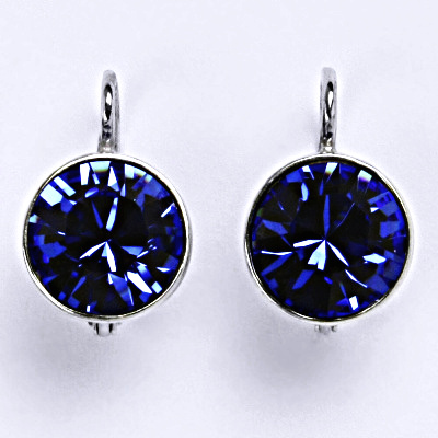 Náušnice s krystalem Swarovski barvy saphire na klasické zapínání patent. Celkový průměr náušnice je 11 mm. Meteriál je stříbro 925/1000. Náušnice mají povrchovou úpravu čisté rhodium.