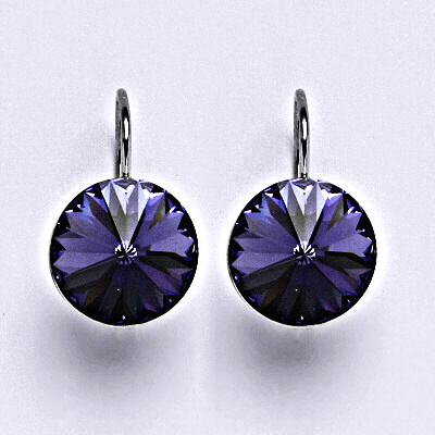 Stříbrné náušnice se Swarovski krystaly Rivoli tanzanit 12 mm, NK 1468