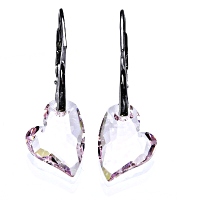 Stříbrné náušnice se Swarovski krystaly rosaline, srdce 17 mm, NK 1295