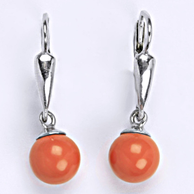Stříbrné náušnice se Swarovski perlou coral 8 mm, NK 1397/20