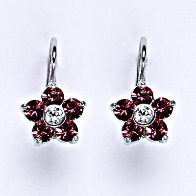 Stříbrné náušnice se Swarovski krystaly ve tvaru kytičky. Náušnice mají zapínání na klasický patent. Celková výška náušnice je 16 mm. Materiál je stříbro 925/1000.