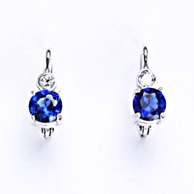 Stříbrné náušnice s velkým spinelem a malým čirým zirkonem. Velikost spinelu 5 mm a zirkonu 2 mm. Celková výška náušnice je 17 mm. Materiál je stříbro 925/1000. Náušnice mají povrchovou úpravu čisté rhodium.