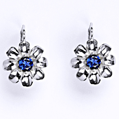 Stříbrné náušnice se spinelem ve tvaru kytky se zapínáním na patent. Celková výška náušnice je 20 mm. Materiál je stříbro 925/1000. Povrchová úprava náušnic je čisté rhodium.