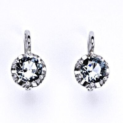 Stříbrné náušnice se syntetickým akvamarínem se zapínáním na klasický patent. Velikost zirkonu je 6 mm. Celková výška náušnice 15 mm. Materiál je stříbro 925/1000. Náušnice mají povrchovou úpravu čisté rhodium.