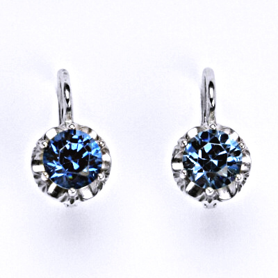 Stříbrné náušnice se syntetickým aquazirkonem se zapínáním na klasický patent. Velikost zirkonu je 6 mm. Celková výška náušnice 15 mm. Materiál je stříbro 925/1000. Náušnice mají povrchovou úpravu čisté rhodium.