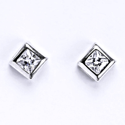 Stříbrné náušnice se syntetickým levandrem se zapínáním na šroubek. Velikost zirkonu je 4x4 mm. Materiál je stříbro 925/1000. Náušnice mají povrchovou úpravu čisté rhodium.