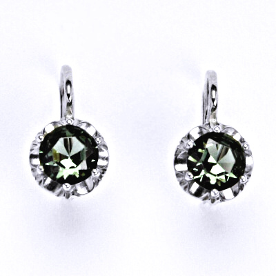 Stříbrné náušnice se syntetickým turmalínem se zapínáním na klasický patent. Velikost zirkonu je 6 mm. Celková výška náušnice 15 mm. Materiál je stříbro 925/1000. Náušnice mají povrchovou úpravu čisté rhodium.