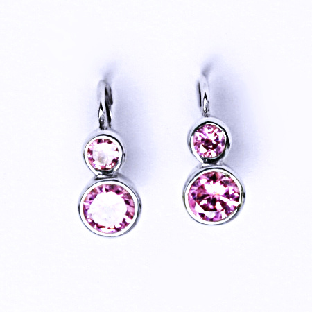 Stříbrné náušnice na klasické patentové zapínání zdobí zirkony růžové