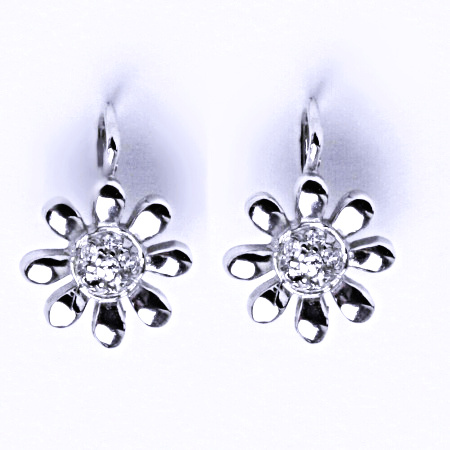 Stříbrné náušnice kytička, čiré zirkony - VE 143