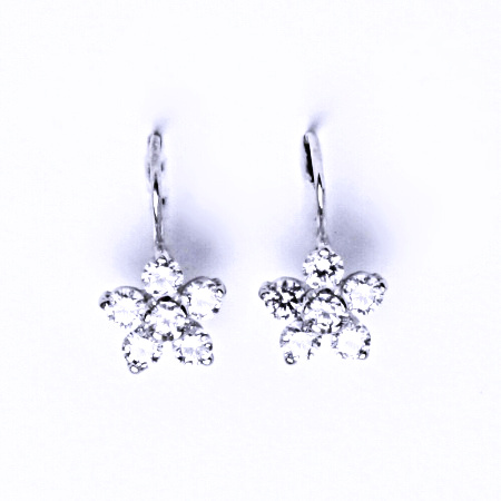Stříbrné náušnice na klasické patentové zapínání jsou zdobeny čirými zirkony, tvar kytičky o průměru 9 mm. Naše šperky se zirkony mají povrchovou úpravu čisté rhodium. Celková velikost náušnice i s háčkem je 15 mm.