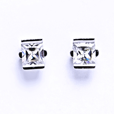 Stříbrné naušnice, čirý zirkon 6x6 mm - VE 16