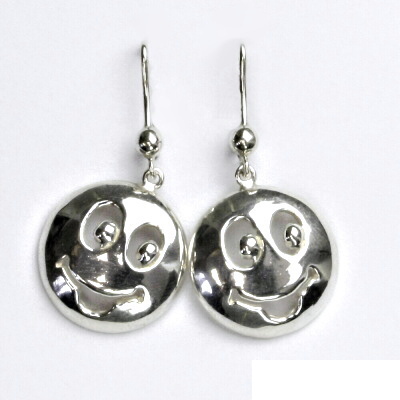 Stříbrné náušnice se smajlíkem o průměru 19 mm. Materiál je stříbro 925/1000. Celková výška náušnice je 38 mm. Orientační váha náušnic je 8 g.
