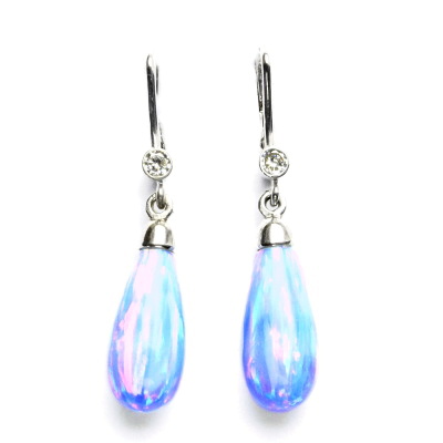 Stříbrné náušnice, světle modrý syntetický opál, čirý zirkon, NK 28/41