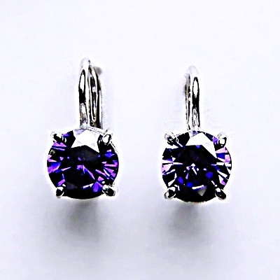 Stříbrné náušnice, zirkon Ametyst 6 mm - NK 1250