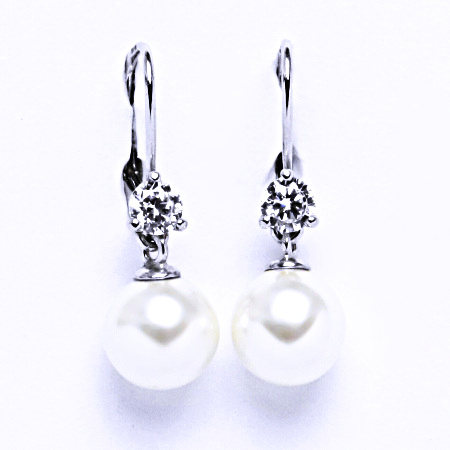 Stříbrné nušnice se Swarovski perlou 8 mm a čirým zirkonem VE 211