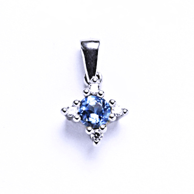 stříbrný přívěsek velikosti 17 mm, šperky stříbrné zdobeny čirými zirkony a akvamarinem. Naše šperky mají povrchovou úpravu-čišté Rhodium,které nevyvolává žádné alergické reakce.