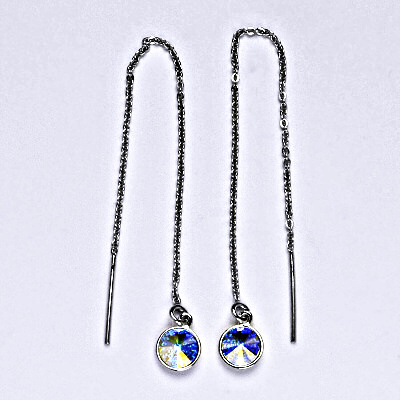 Stříbrné řetízkové protahovací náušnice se Swarovski AB krystalem, NŘ 1336