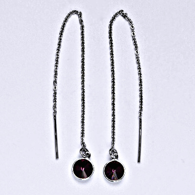Stříbrné řetízkové protahovací náušnice se Swarovski krystalem ametyst, NŘ 1336