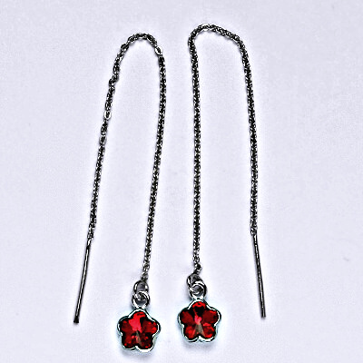 Stříbrné řetízkové protahovací náušnice se Swarovski krystalem ve tvaru kytičky. Velikost krystalu je 10 mm. Celková výška náušnice je 10 cm. Materiál je stříbro 925/1000.
