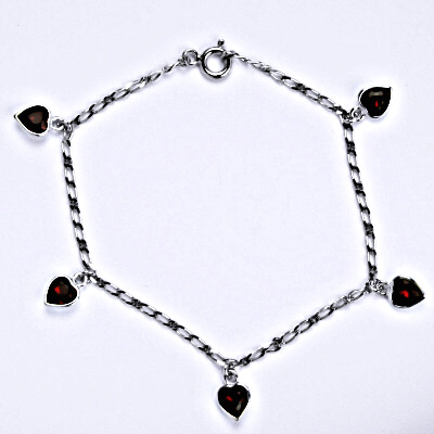 Stříbrný náramek se Swarovski krystaly siam, srdíčka, R 1315
