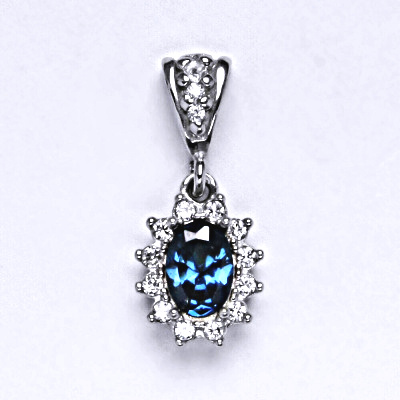 Stříbrný přívěsek Kate, zirkon akvamarin tmavý, čiré zirkony, P 1480/2
