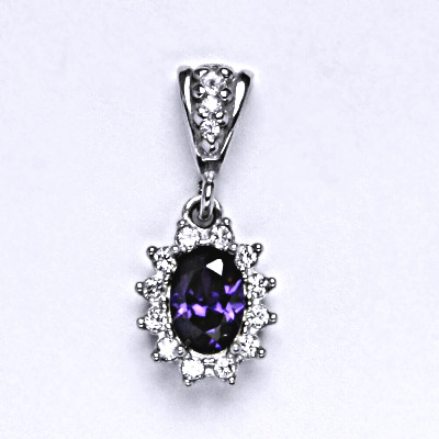 Stříbrný přívěšek se zirkonem ametyst a malými čirými zirkony. Velikost zirkonu je 7x5 mm. Materiál je stříbro 925/1000. Celková výška přívěšku je 22 mm. Orientační váha přívěsku je 1,56 g.